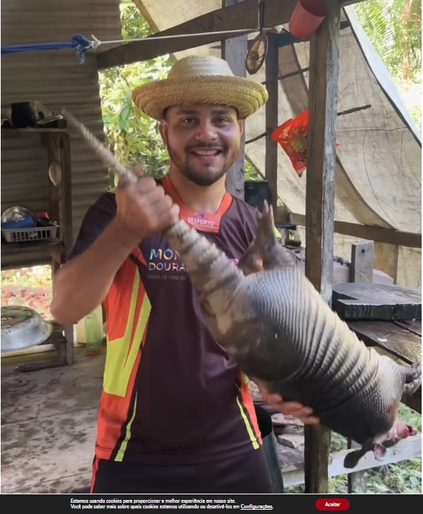 Alguns dos animais mortos e cozidos pelo influenciador foram preguiça, paca, mucura, tatu, cutia, jabuti e arraia