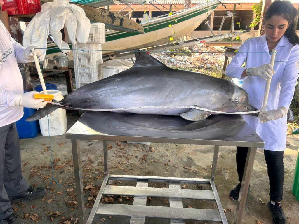 Animal media cerca de 1,40m e apresentava marcas de lâmina e emalhe em rede de pesca.