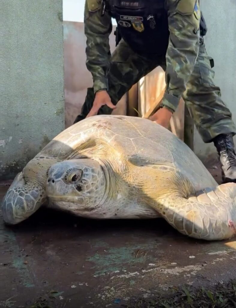 Batalhão Ambiental da PM resgata tartaruga marinha de 200 quilos em região ribeirinha do Amapá
