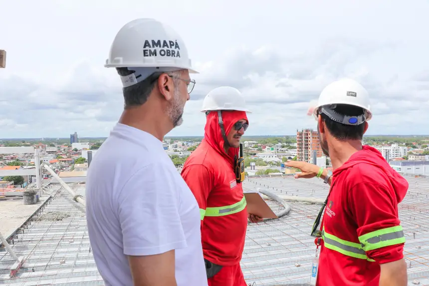 Ao lado dos trabalhadores, governador acompanhou a concretagem das últimas lajes do Novo Hospital de Emergências, em Macapá