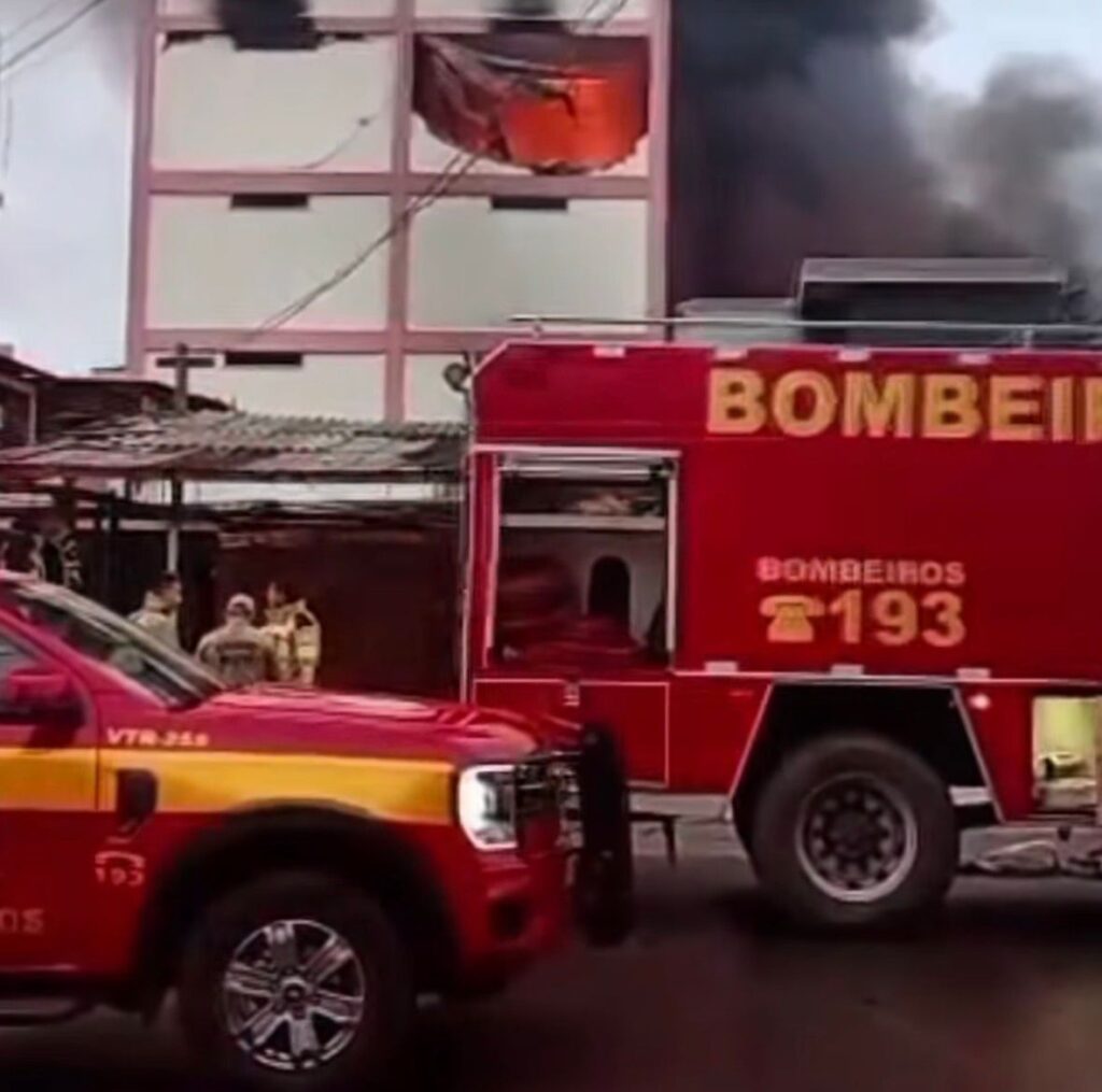 De acordo com informações o incêndio atingiu uma distribuidora de alimentos e descartáveis, apontada como Comercial Ibiapina