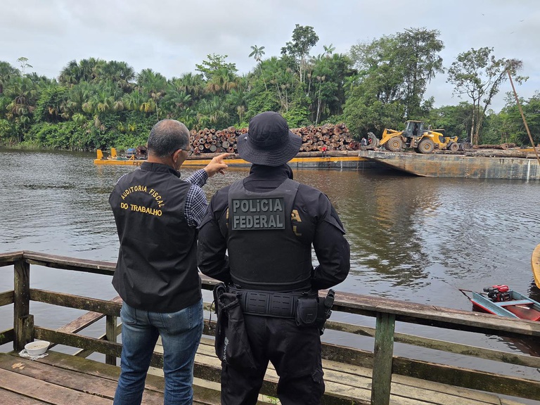PF e auditores do trabalho fiscalizam área de manejo florestal em Mazagão-AP