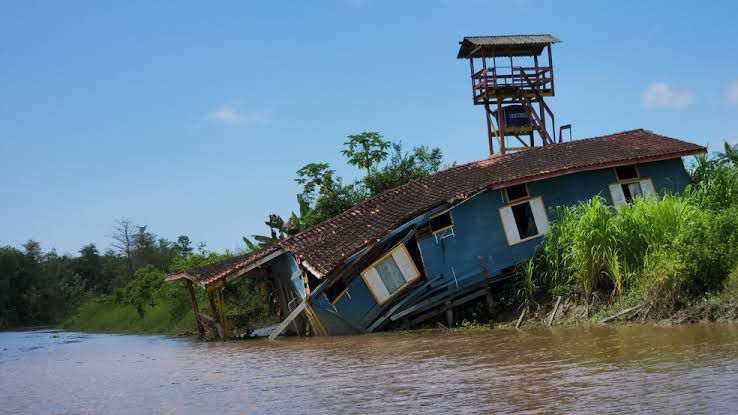 Do outro lado desse processo, está o arquipélago do Bailique, na foz do Amazonas. As ilhas, que sempre conviveram com marés fortes e uma paisagem em constante movimento, passaram a sofrer uma erosão acelerada: casas, escolas, trapiches e até cemitérios vêm sendo literalmente engolidos pelas águas. Moradores e pesquisadores relatam o fenômeno das “terras caídas”, com centenas de residências já destruídas. A isso se soma uma salinização crescente dos rios e igarapés que cercam as comunidades.