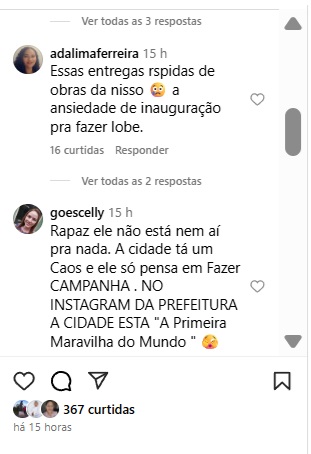 Enquanto isso, as redes sociais seguem sendo o principal palco do descontentamento popular, onde vídeos, relatos e cobranças circulam em ritmo acelerado, pressionando a gestão municipal a dar respostas mais efetivas.