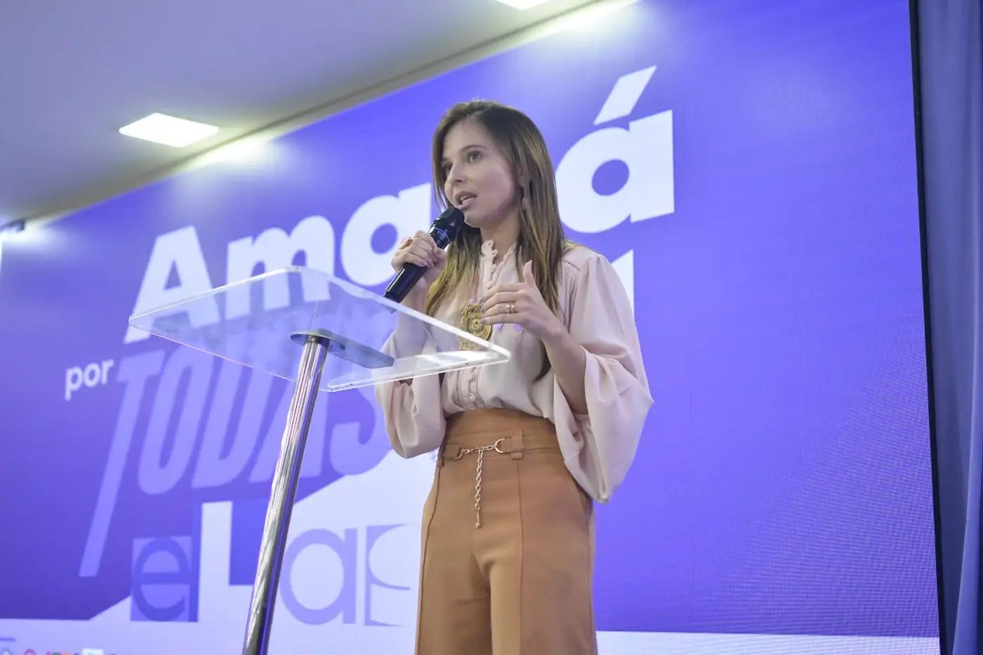 Priscilla Flores, primeira-dama do Estado, conduziu o acender das luzes lilás no Palácio do Setentrião