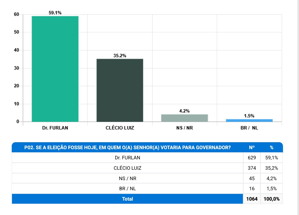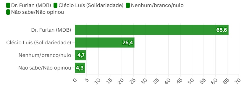 No levantamento divulgado nesta terça-feira (24), Furlan aparece com 59,1% e Clécio com 35,2%