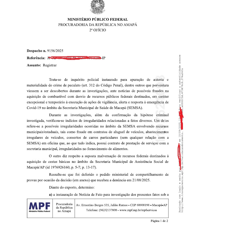 Documentos obtidos com exclusividade pelo ConectAmapá mostram que o Ministério Público Federal (MPF) apresentou denúncia formal contra servidores públicos e empresários envolvidos em um esquema de desvio de verbas destinadas ao combate à pandemia da Covid-19, na Prefeitura de Macapá (AP), durante a gestão do prefeito Antônio Furlan (MDB).