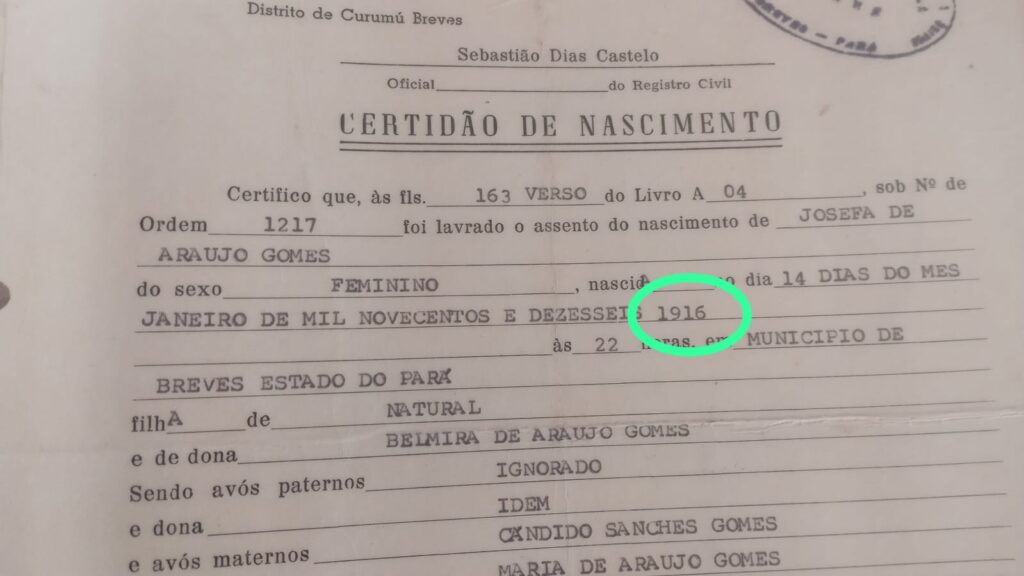 Já pensou chegar aos 110 anos? Dona Josefa de Araújo Gomes chegou lá. Ela foi registrada no município de Breves no dia 14 de janeiro de 1916. Passou por várias localidades do Arquipélago do Marajó, mas foi em Afuá, onde mora atualmente, que encontrou o lugar ideal para viver ao lado de seus descendentes, que não são poucos.