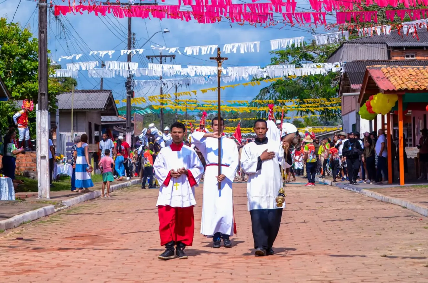 A celebração, que reuniu uma multidão, iniciou com fé e devoção na missa campal em frente a Capela de São Tiago, que seguiu com procissão e peregrinação das imagens dos Santos Tiago e Jorge pelas ruas da cidade, distrito do município de Mazagão, até a Igreja de Nossa Senhora da Assunção. O momento reforça a importância da festividade religiosa centenária que completa 248 anos.