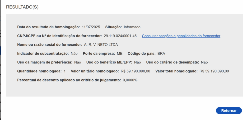 O critério de julgamento foi o menor preço, e o valor do pregão eletrônico estipulado pela prefeitura de Macapá não foi divulgado pelo edital. O Conectamapa apurou que o valor estimado de compra era de R$ 78,8 milhões.